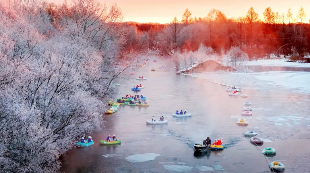 清晨,露结氤氲的江河之上,一艘艘皮划艇划开澄明的水面。两岸玉树琼枝,雾凇晶莹剔透,宛如仙境。摄影爱好者架起“长枪短炮”,定格这精彩的瞬间;游客随波泛舟,聆听林籁泉韵,感受人与自然和谐共生的清逸之美。