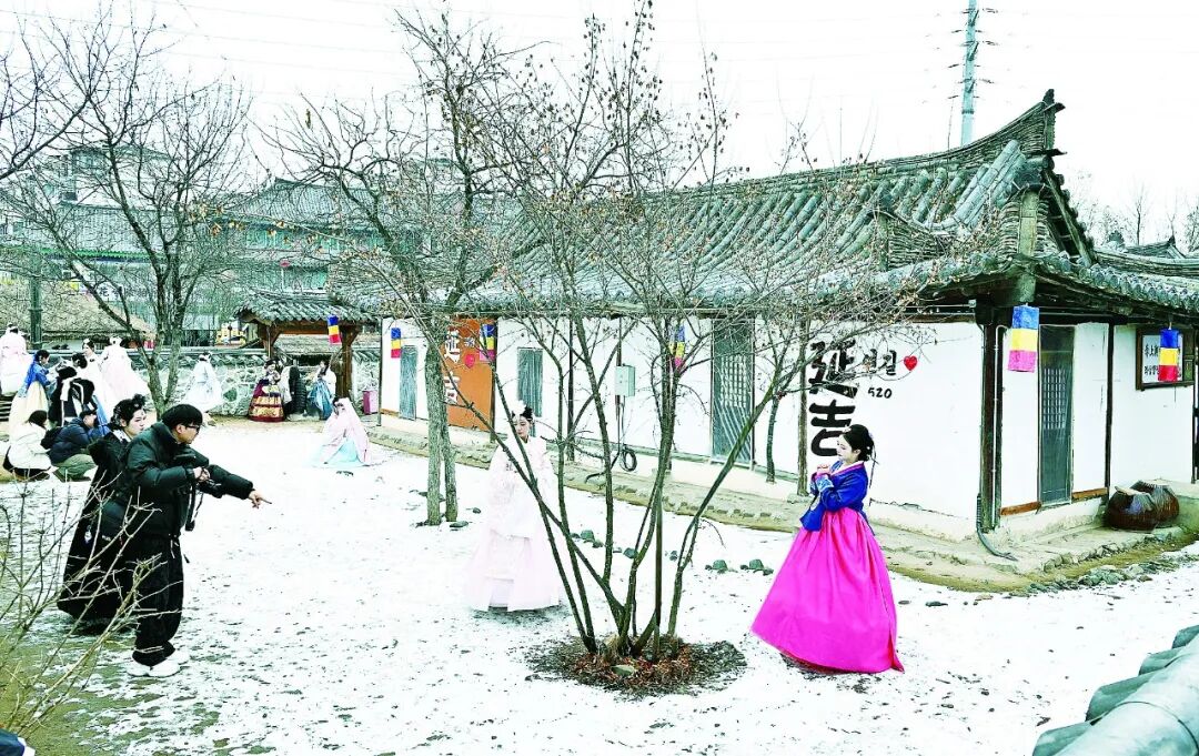浮翠流丹的民族服饰与银装素裹的冰雪景观,是中华美学与自然底色的相映成趣;施朱傅粉的现代装扮与飞檐翘角的古朴建筑,是当代风尚与历史文明的共生共荣,延吉中国朝鲜族民俗园内美人、美景美不胜收,“新雪季,我们将在园区引入驯鹿和白鸽,为静态雪景增添生机,还将打造融入传统文化元素的花灯秀和流光溢彩的水晶灯组,‘延长’出片时效。”该景区营销总监张晋铭表示。以该景区为代表的“梦幻旅拍”产品,以“服饰+雪景”的视觉锚点,为游客提供多样化、专业化、定制化的冰雪主题旅拍服务。