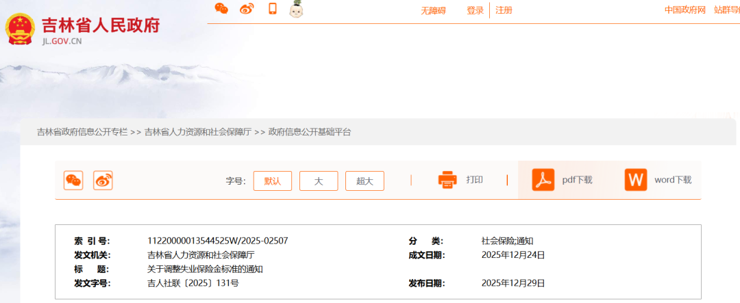 12月29日,吉林省人社厅发布通知调整失业保险金标准。具体如下: