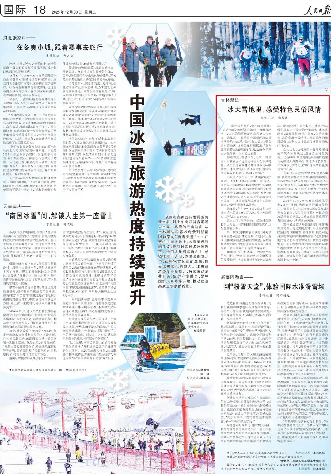 12月30日,人民日报18版刊发《吉林延边——冰天雪地里,感受特色民俗风情》。
