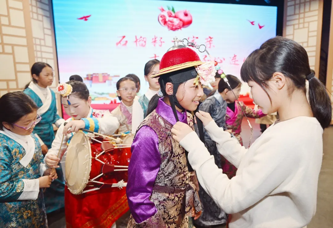 文化体验让认同落地生根。在打糕馆里,“咚、咚”的敲击声中,糯米越发清香四溢。两地学子争先恐后抡起木槌,你一下我一下,默契配合。打糕成型后,孩子们迫不及待地品尝,软糯的打糕扯出晶莹绵长的丝线。“黏住啦!像橡皮糖!”孩子们举着“打糕丝”笑得前仰后合。手机镜头记录下这欢乐一幕:“舅舅快看!我们在吃打糕,能抻好长!”视频那头,传来家人亲切的笑声。