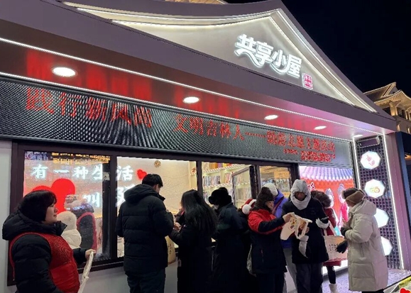 夜晚的延吉网红弹幕墙灯火通明,看着独具延吉特色的景象,来自州内外的游客忍不住纷纷掏出手机拍照留念。“需要我们帮忙拍照吗?”“你们可以拿着这些标语牌拍照,很出片的。”“需要喝杯热水暖和一下吗?”在拥挤的人群中,穿着红色马甲的志愿者们站在延吉网红弹幕墙共享小屋内十分显眼,志愿者们热情周到地为游客提供热饮、信息咨询、景点引导、行李寄存等服务。同时,他们还为有需求的外地游客介绍延吉特色旅游景点和美食,并帮助他们合影,记录当下的美好瞬间。