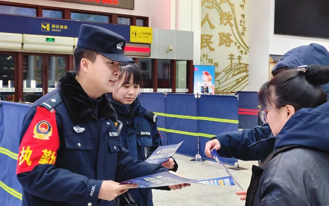 为推进铁路法治宣传活动,民警深入高铁基础设施段,用通俗易懂的真实的案例,向铁路职工普及铁路安全知识,切实增强职工的铁路安全防范意识。民警还向车站工作人员、候车旅客等发放反诈宣传手册,通过现场解读法规、以案释法等形式,普及治安管理与道路运输相关规定。手把手引导旅客选择正规出行方式,告知旅客在发现各类危及铁路运行安全的事件时,第一时间通知铁路公安部门,共同守护铁路运输安全。