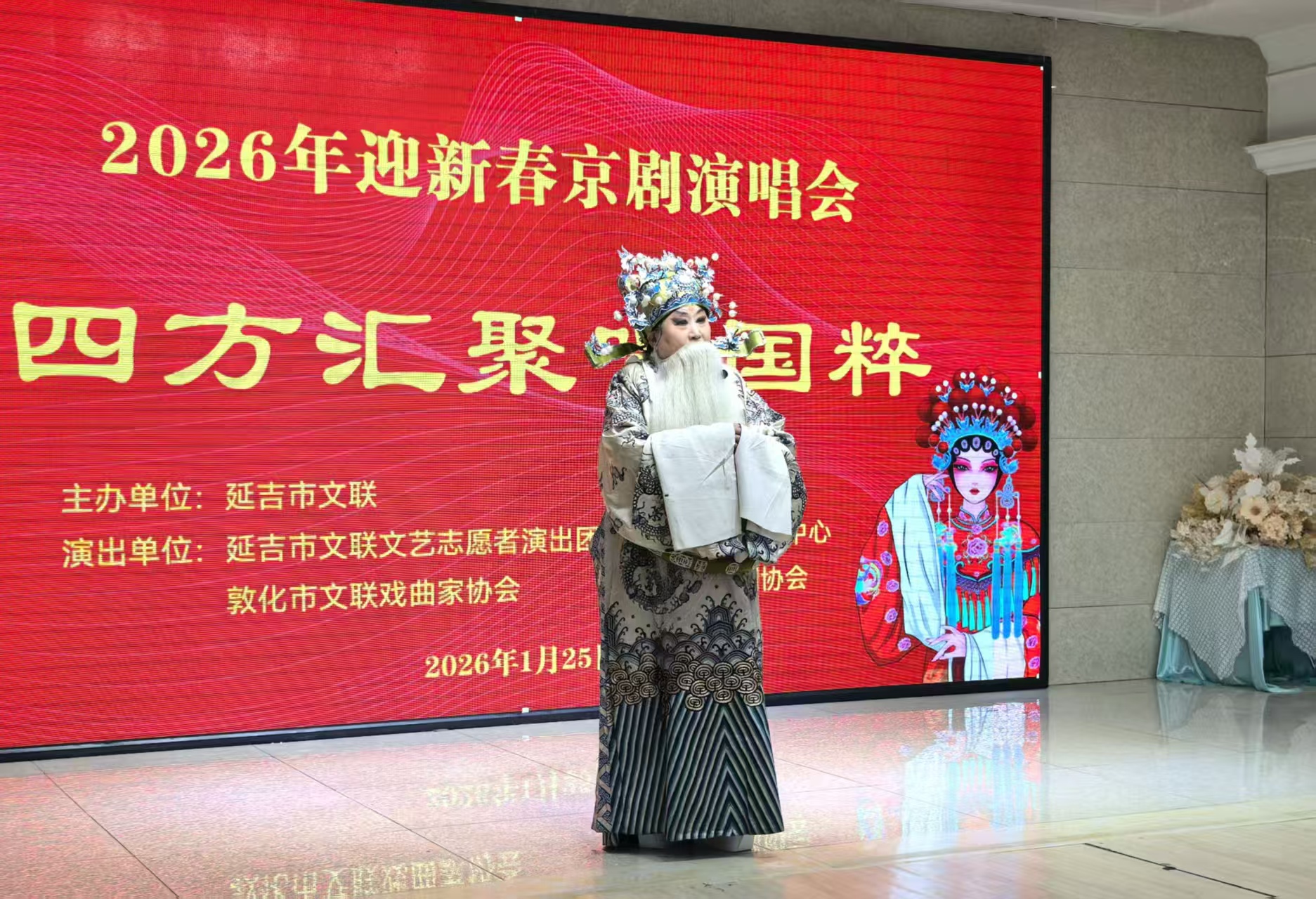 本次演唱会由延吉市文联主办,延吉市文联文艺志愿者演出团、延边京昆艺术中心、敦化市文联戏曲家协会、和龙市京剧协会共同出演,旨在为京剧爱好者搭建交流平台,推动京剧艺术在基层的传承普及,丰富文化供给,满足人民群众多元文化需求,不断提升延吉市公共文化服务品质。