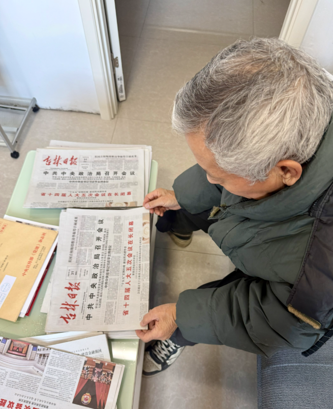 2月2日下午,珲春市河南街道办事处的报刊架前,78岁的张明山正小心翼翼地整理着一摞报纸,额头上沁出细密的汗珠。从2016年至今,这位朝鲜族退休教师坚持每三天往返两公里,到街道更换报刊,与另外十几位退休教师组成“接力读报团”,用十年时光搭建起一座传递资讯、联结情谊的“书香桥梁”。