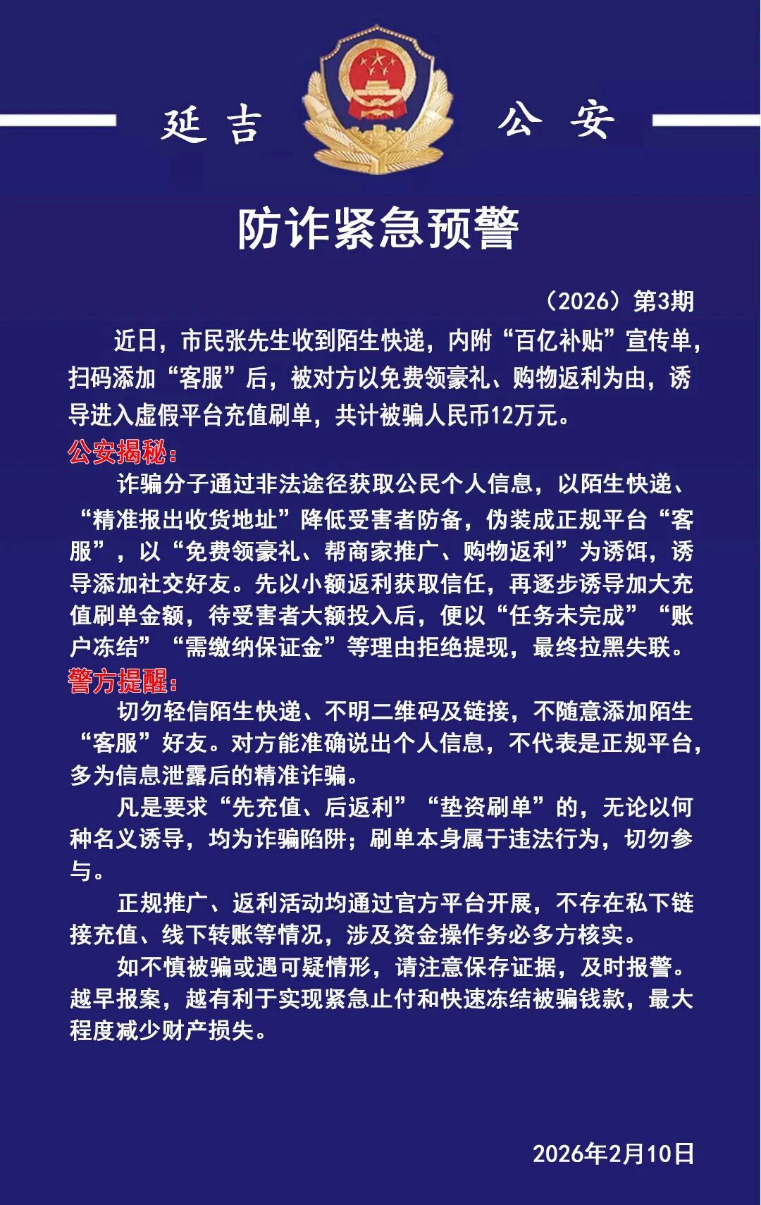 紧急预警!延吉一市民被骗12万元