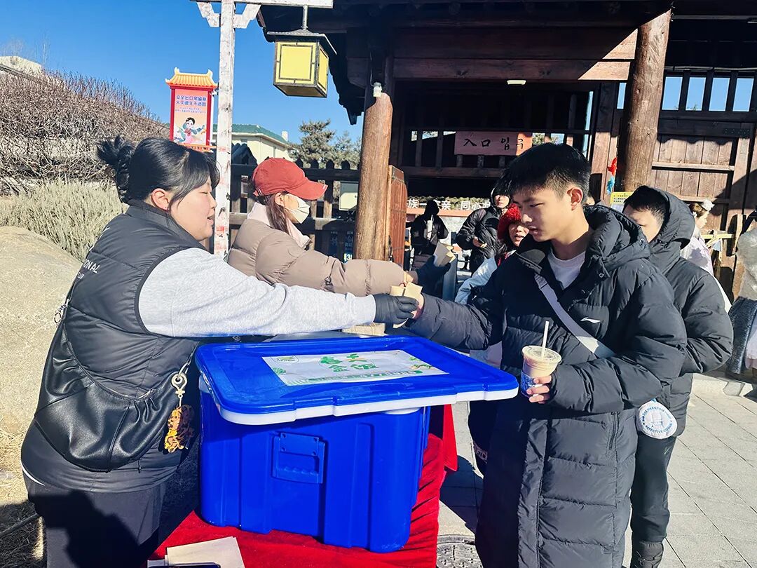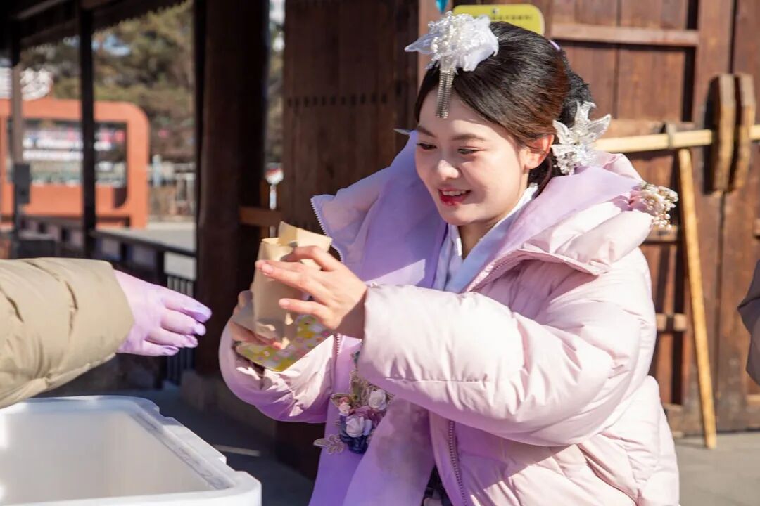 “新年快乐!免费送红豆包,人人可以领。”刚入园区,游客便被园区“送红豆包”的仪式感暖到了。工作人员将一个个热气腾腾的红豆包递到游客手中,让这份热乎乎、甜丝丝的祝福,伴随大家开启游园之旅。一位来自四平的女游客说:“没想到一进门就有这样的惊喜,这趟延边年味之旅,从嘴里甜到了心里!”