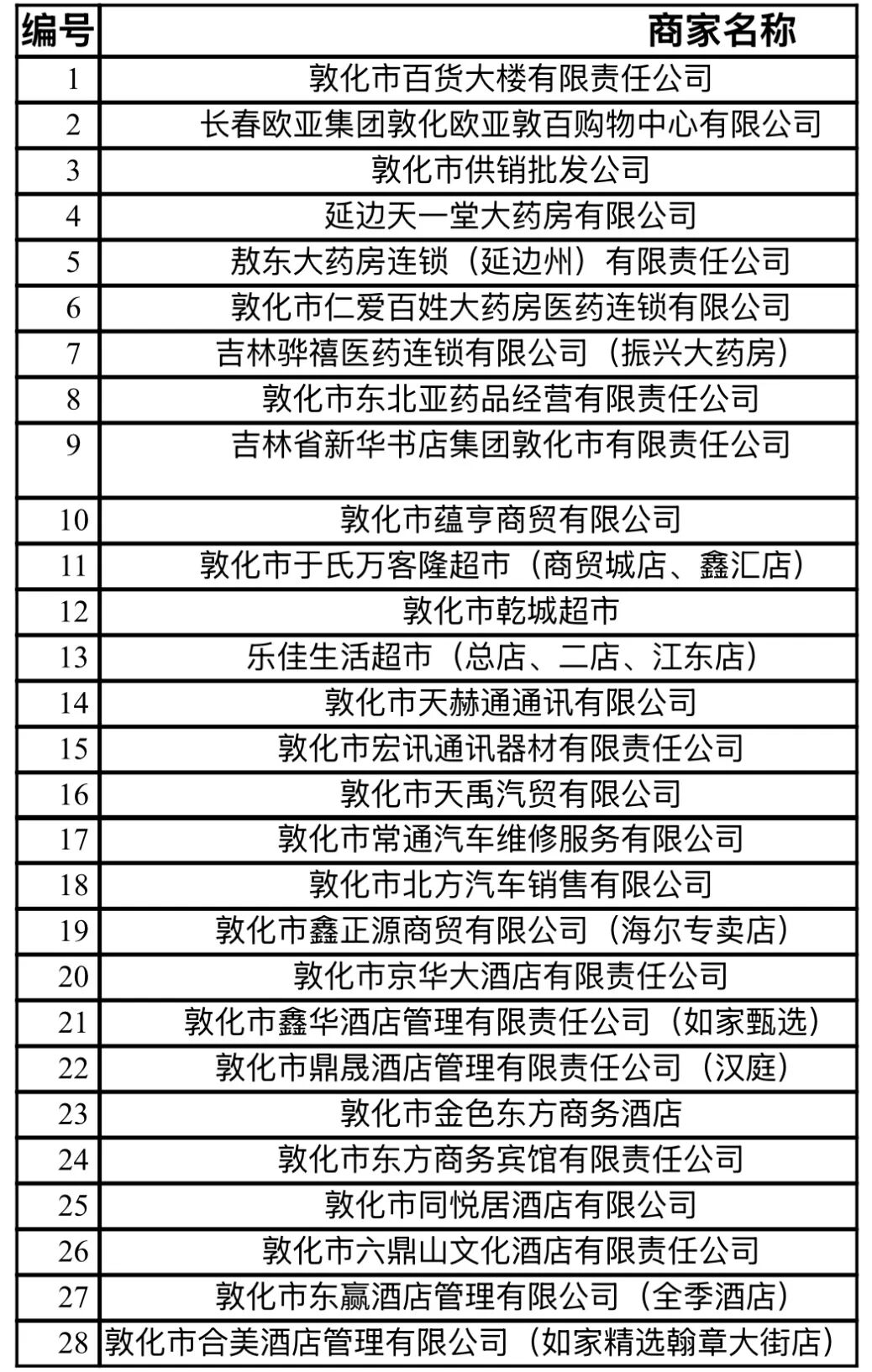 百货类(不含珠宝黄金):共28户企业;