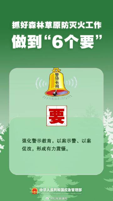 春季历来是森林草原火灾多发期。清明将至,民俗祭祀、春耕生产、进山踏青等人为活动频繁,野外火源管控难度进一步加大,森林草原防灭火形势严峻复杂。如何防范森林草原火灾?一定做到“7个严禁”“6个要”↓