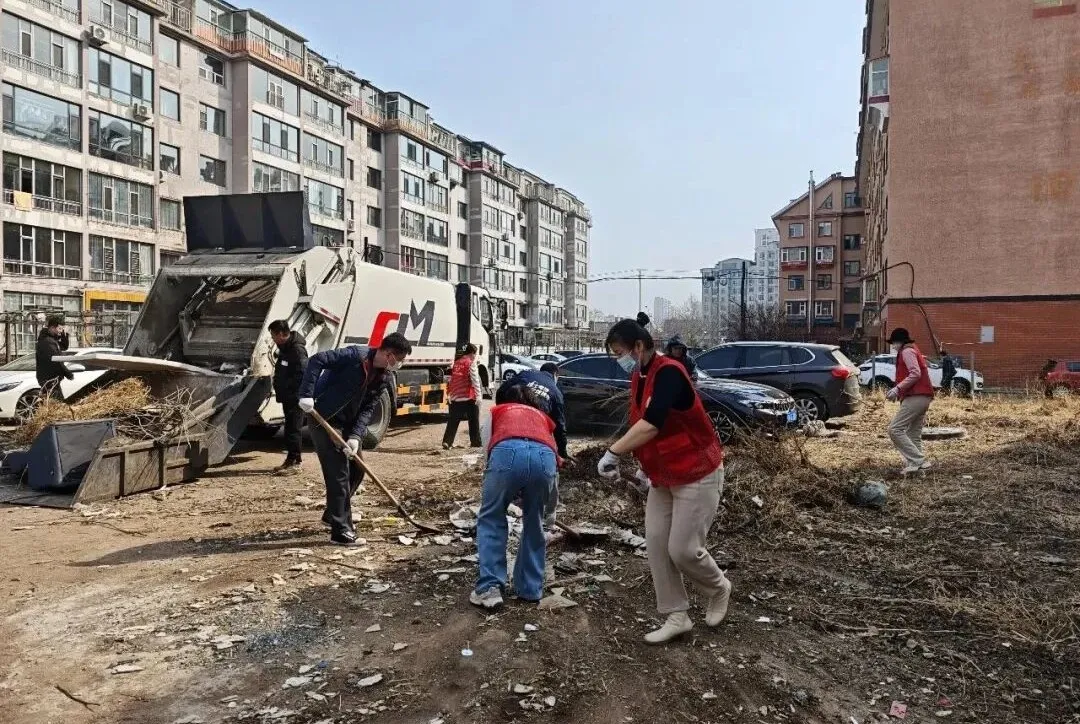 同一时间,进学街道文化社区嘉宇时尚宾馆后院,延吉市水利局的志愿者们与社区工作人员合力攻坚,翻斗车来回穿梭,越冬垃圾被迅速清运。