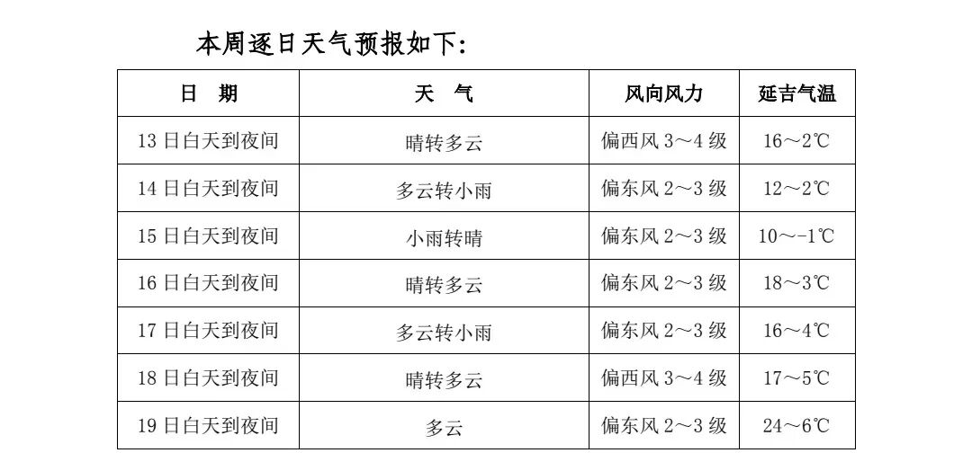 延边州气象局预计:本周(4月13日-19日)气温偏高,降水正常。