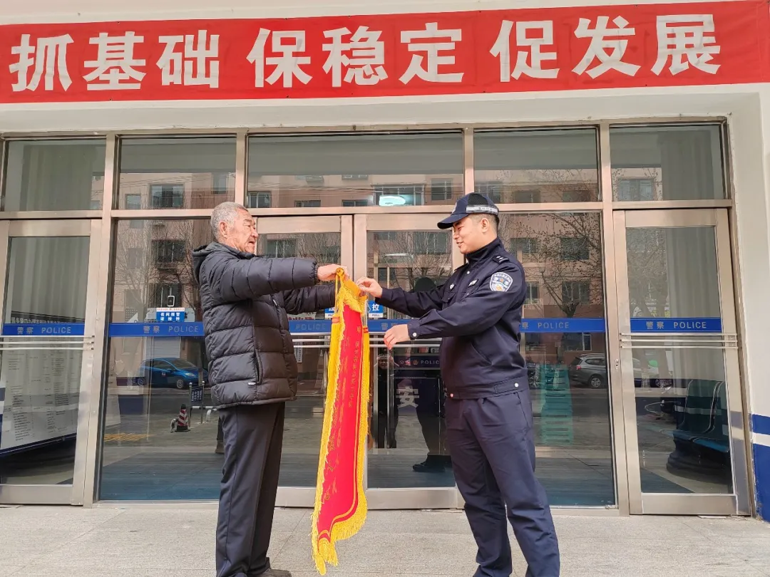 次日,韩大爷特意定制了一面印有“人民警察为人民失而复得暖人心”的锦旗送到新安派出所,用最真诚的方式,向辛苦付出的民警和热心群众表达深深的谢意。