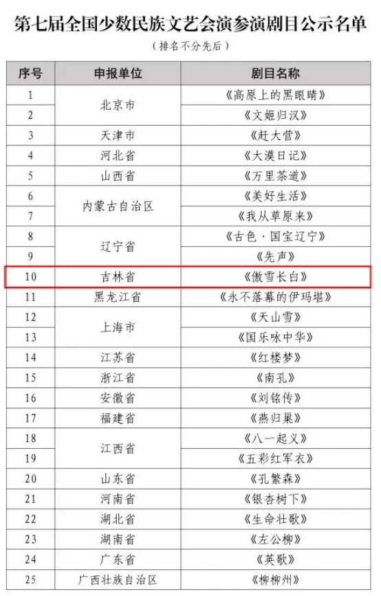 近日,国家民委发布《关于第七届全国少数民族文艺会演参演剧目的公示》,延边歌舞团倾力打造的民族舞剧《傲雪长白》成功入选,即将代表吉林省亮相国家舞台,为全国观众上演波澜壮阔的抗联史诗,展现长白风骨。至此,延边歌舞团成为全国极少数实现“七届全勤参演”的文艺院团之一,为国家民族文艺事业再铸辉煌。
