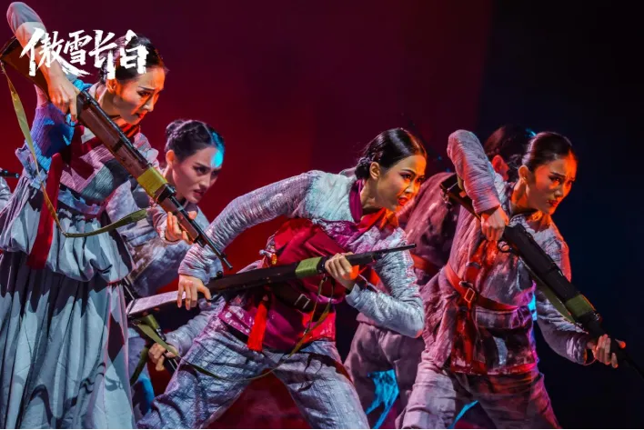 民族舞剧《傲雪长白》以东北抗联14年艰苦卓绝的抗战斗争为背景,以抗联缝纫队的真实故事为创作原型,讴歌了各族人民团结一致共御外侮,抗联战士以血肉之躯铸就钢铁长城的崇高爱国主义精神。该剧首创以“抗联缝纫队女战士”为红色舞剧的主角,将叙事视角聚焦于抗战时期的平凡女性,她们在战火中淬炼成钢,以针线为刀刃,为抗联部队筑起了永不坍塌的后方防线;融合中国朝鲜族民族舞蹈、非物质文化遗产与长白山地域特色的民族民间舞蹈,强调时代特征与民族特色,呈现出那些默默无闻,却铸就伟大民族精神的抗联女战士群像。