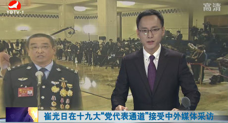 崔光日在十九大“党代表通道”接受中外媒体采访