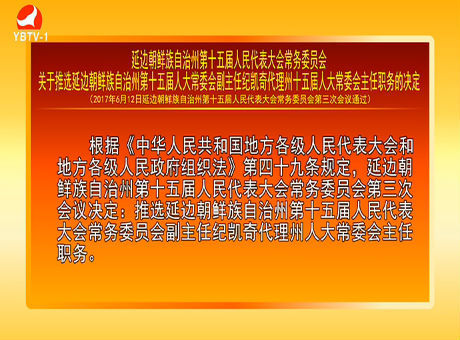 延边朝鲜族自治州第十五届人民代表大会常务委员会关于推选延边朝鲜族自治州第十五届人大常委会副主任纪凯奇代理州十五届人大常委会主任职务的决定