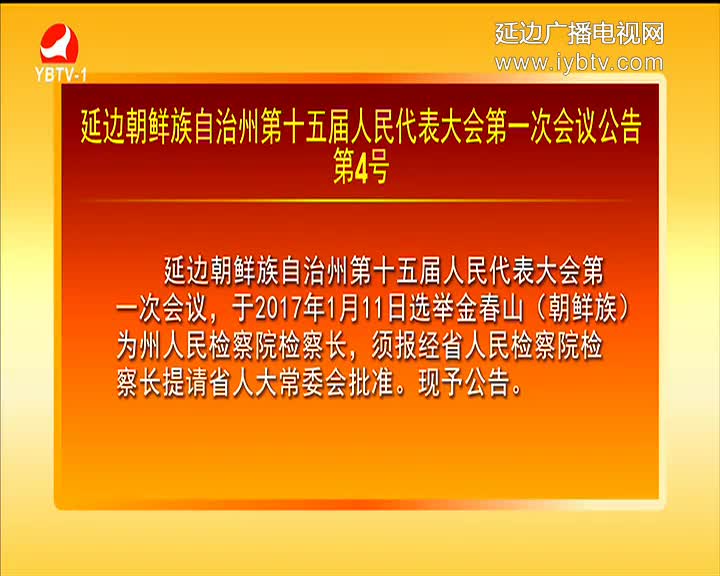 延边朝鲜族自治州第十五届人民代表大会第一次会议公告第4号
