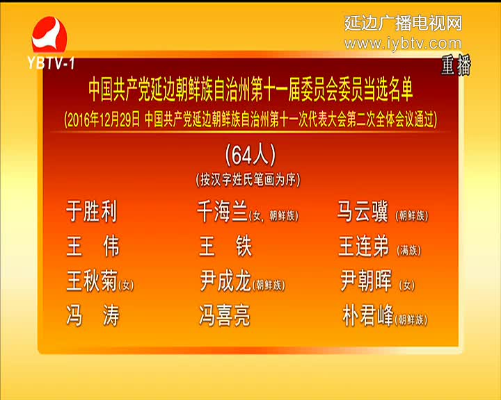 中国共产党延边朝鲜族自治州第十一届委员会委员当选名单