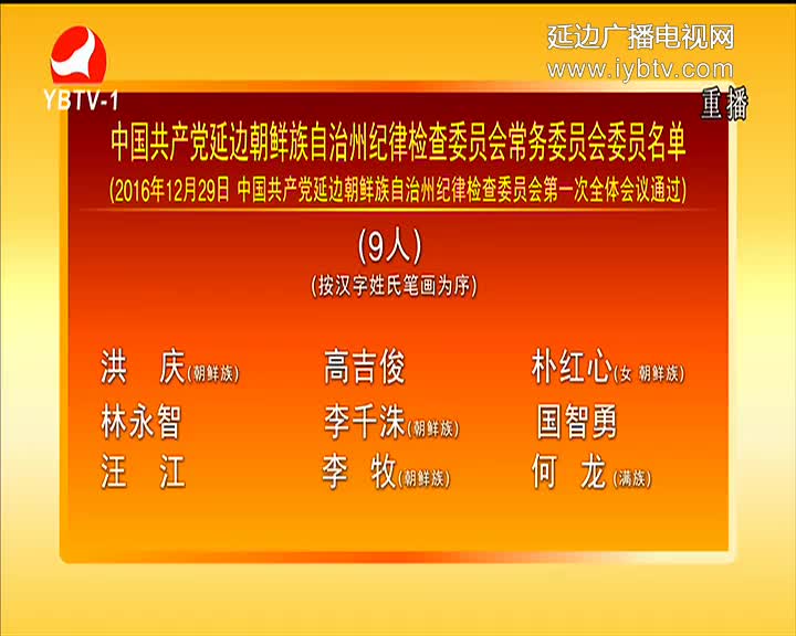 中国共产党延边朝鲜族自治州纪律检查委员会常务委员会委员名单