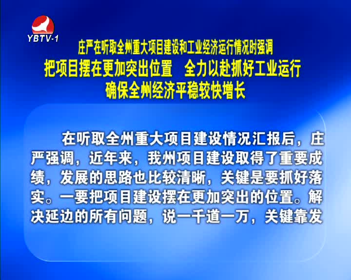 把项目摆在更加突出位置 全力以赴抓好工业运行 确保全州经济平稳较快增长