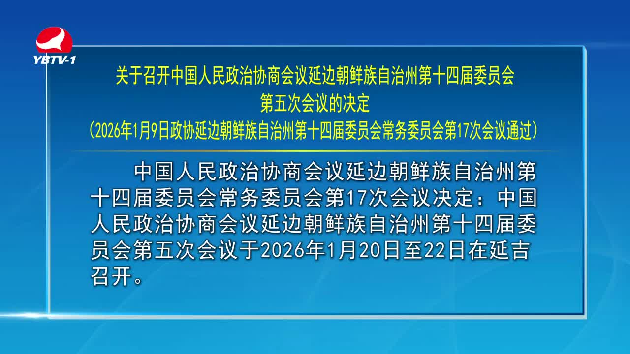 关于召开中国人民政治协商会议延边朝鲜族自治州第十四届委员会第五次会议的决定