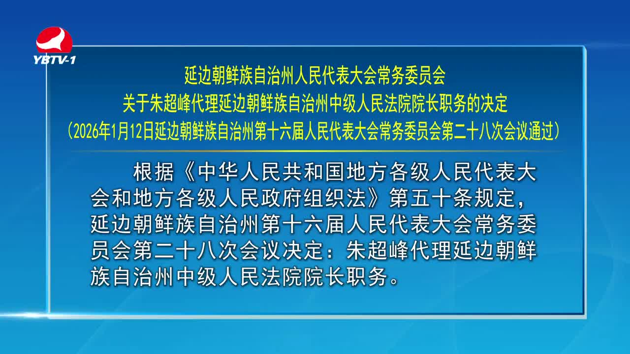 延边朝鲜族自治州人民代表大会常务委员会关于朱超峰代理延边朝鲜族自治州中级人民法院院长职务的决定