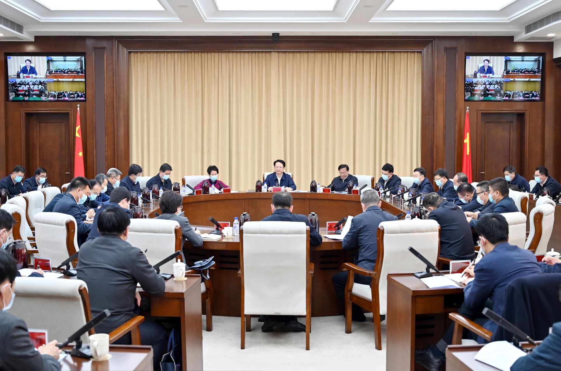 11月11日,省委书记景俊海以视频形式主持召开省委常委会会议暨省疫情防控领导小组会议,传达学习习近平总书记在11月10日中共中央政治局常务委员会会议上的重要讲话精神,听取有关地区和省直有关部门汇报,研究部署下步疫情防控举措