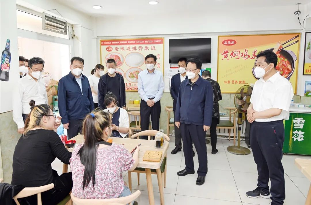 5月28日,省委书记景俊海在长春市就常态化疫情防控、经济社会发展等工作进行调研,在派克运动公园实地察看防疫措施落实情况,与正在锻炼的群众亲切交流