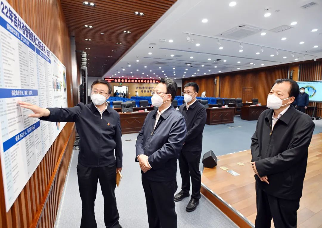 他来到省国家教育考试指挥中心,详细了解全省高考各项备考措施落实情况,并以视频形式听取吉林市、榆树市、临江市、珲春市党委主要负责同志汇报,要求各地严格落实考前考生核酸检测、健康监测等常态化防控措施,严谨细致、扎实有序做好各项准备工作,确保高考安全平稳顺利进行