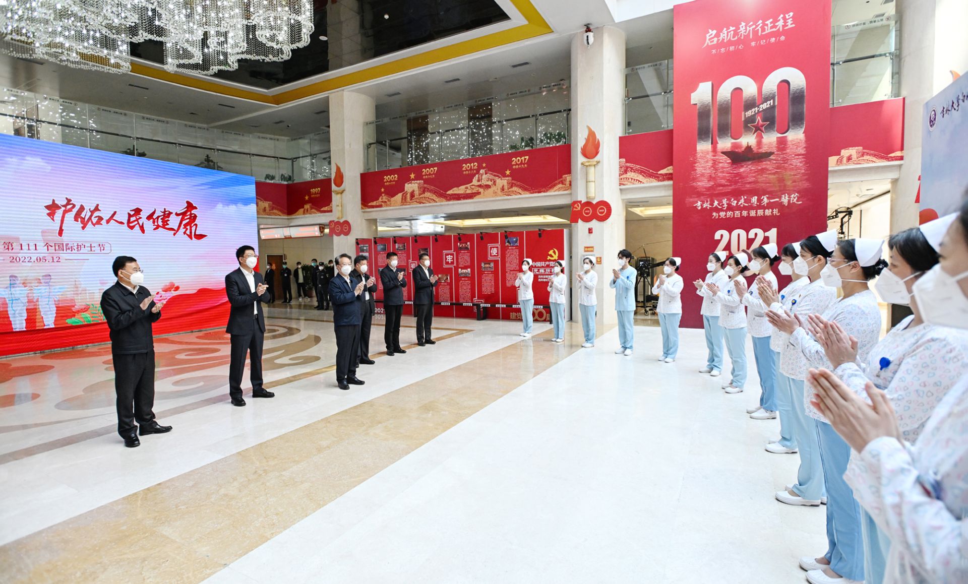 5月12日,省委书记景俊海在长春市就常态化疫情防控、公共卫生体系建设等工作进行调研,在吉林大学白求恩第一医院看望慰问一线医护人员