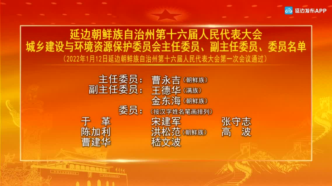 【视频新闻】延边朝鲜族自治州第十六届人民代表大会城乡建设与环境资源保护委员会主任委员、副主任委员、委员名单
