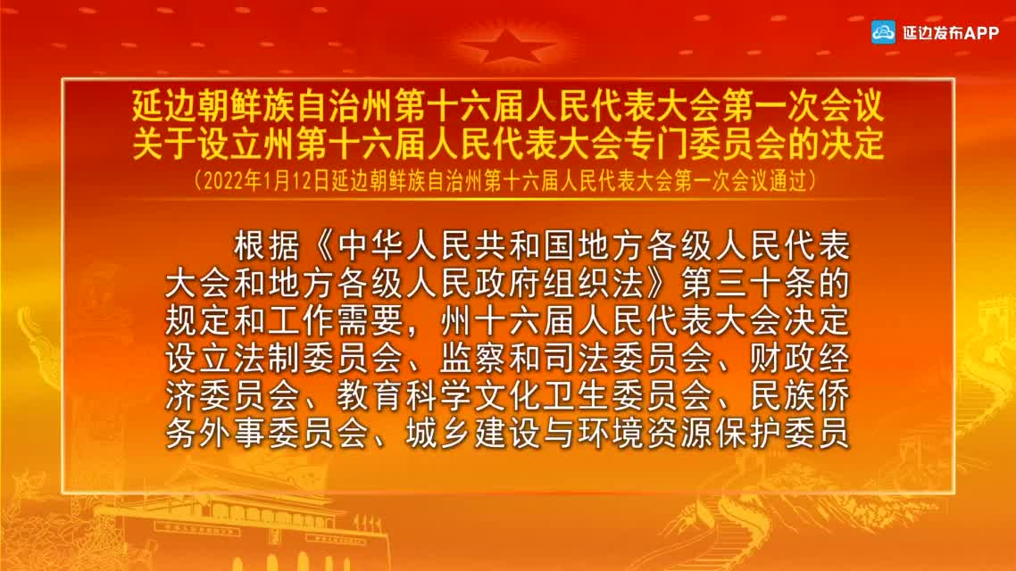 【视频新闻】延边朝鲜族自治州第十六届人民代表大会第一次会议关于设立州第十六届人民代表大会专门委员会的决定