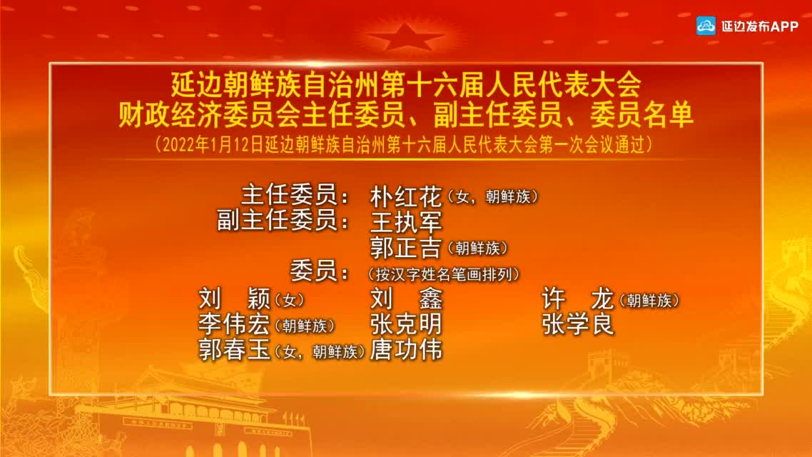 【视频新闻】延边朝鲜族自治州第十六届人民代表大会财政经济委员会主任委员、副主任委员、委员名单