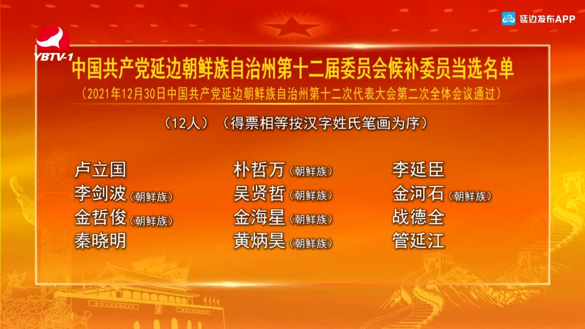 【视频新闻】中国共产党延边朝鲜族自治州第十二届委员会候补委员当选名单