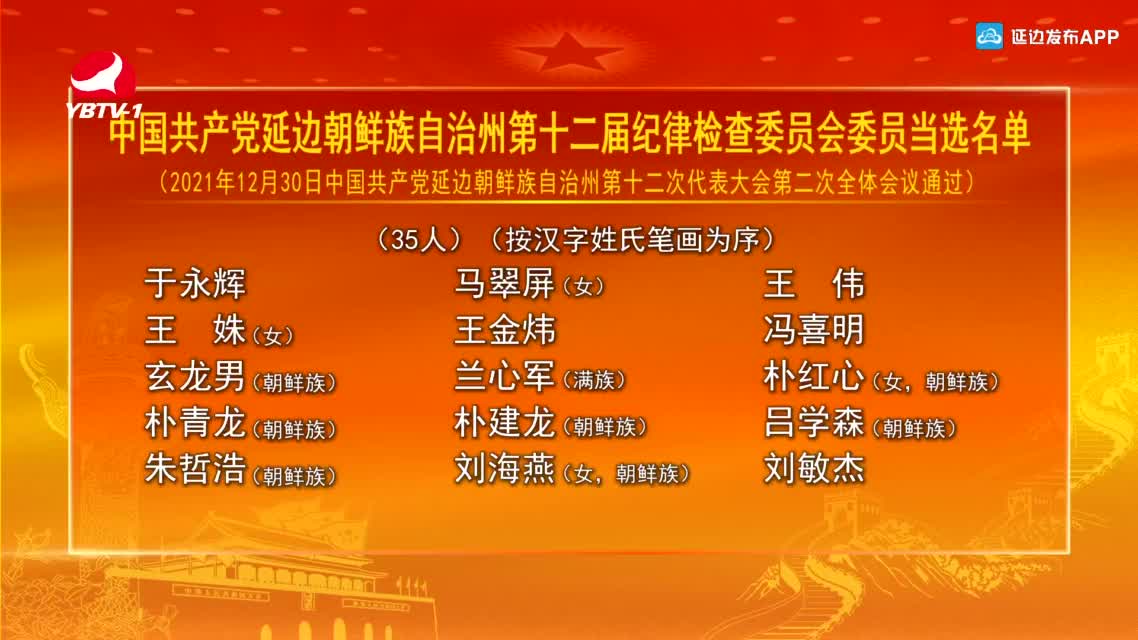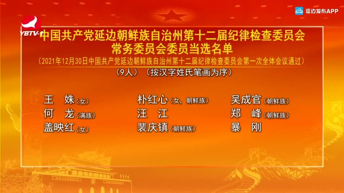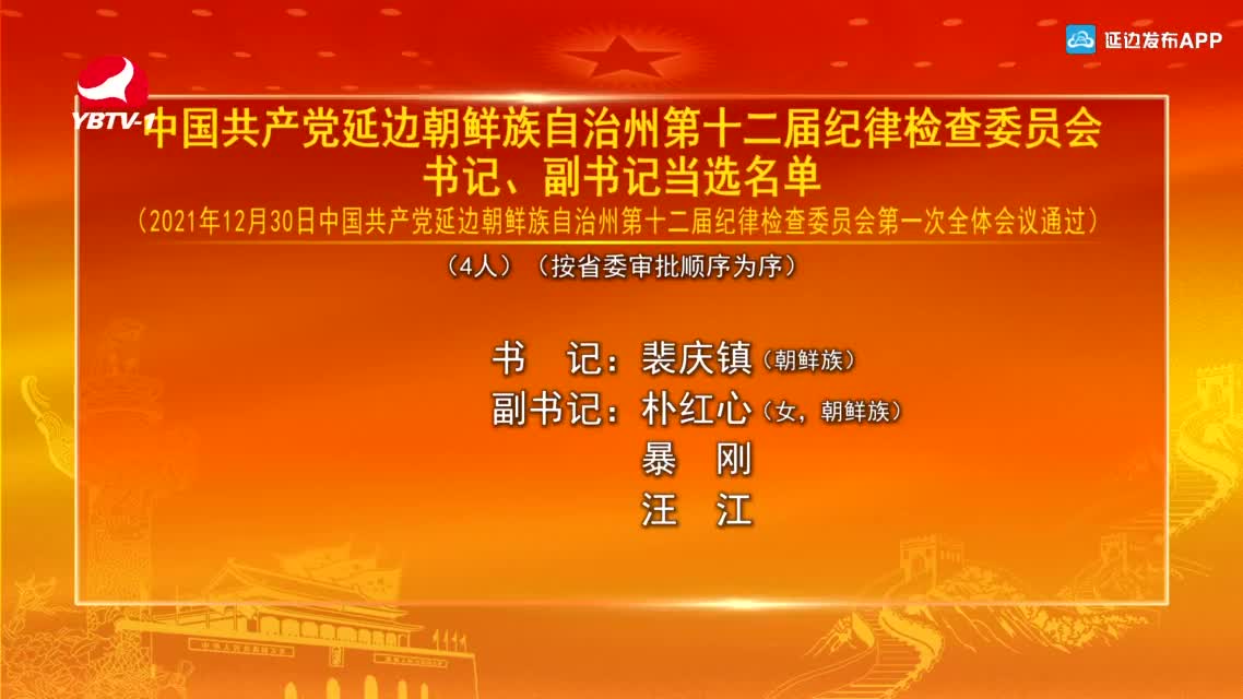【视频新闻】中国共产党延边朝鲜族自治州第十二届纪律检查委员会书记、副书记当选名单