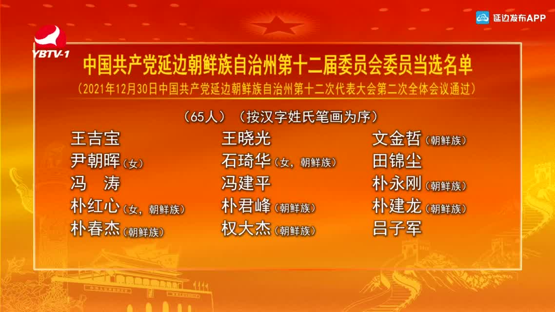 【视频新闻】中国共产党延边朝鲜族自治州第十二届委员会委员当选名单