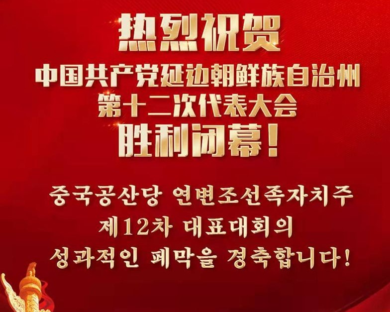 热烈祝贺中国共产党延边朝鲜族自治州第十二次代表大会胜利闭幕