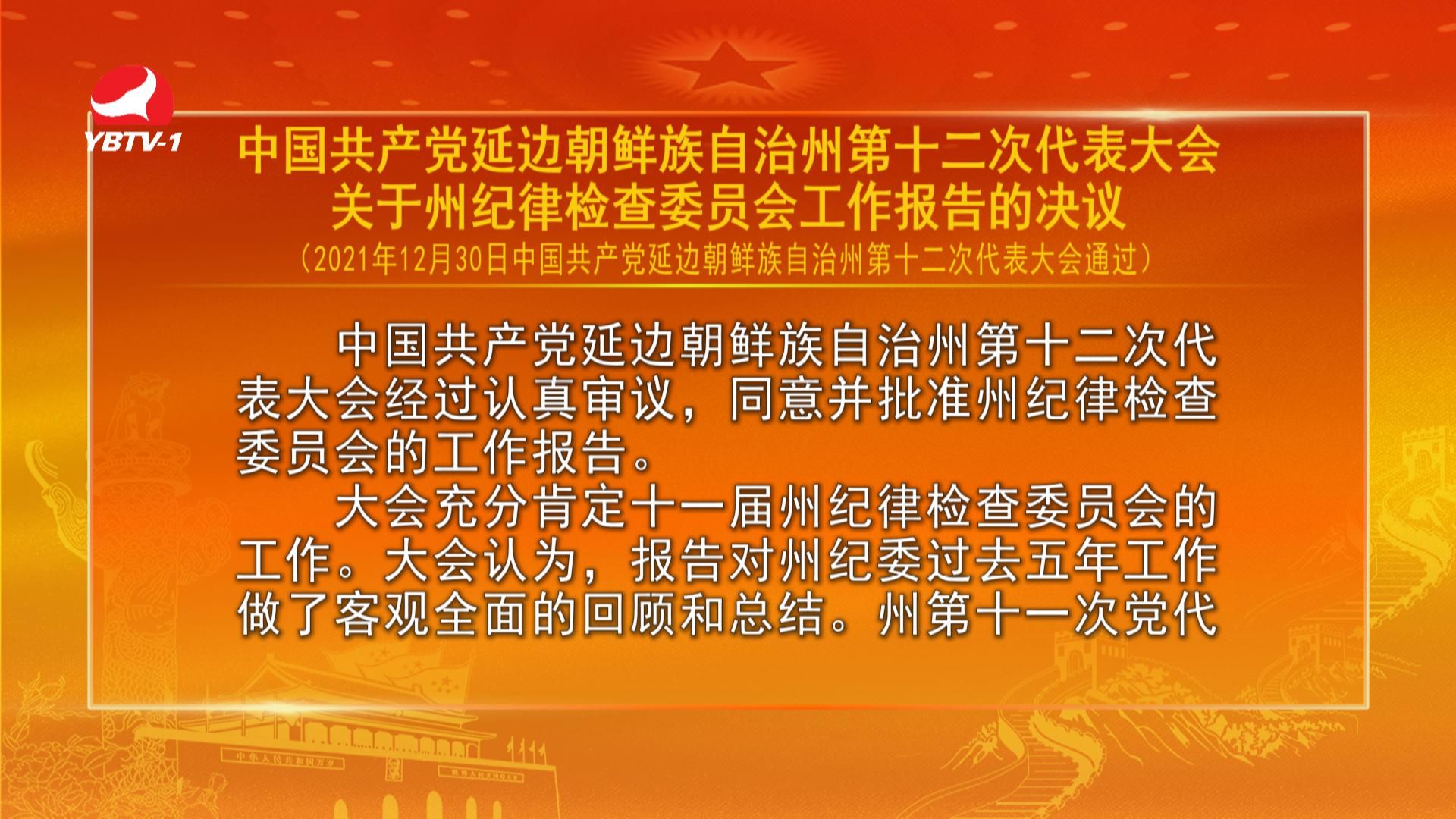 【视频新闻】中国共产党延边朝鲜族自治州第十二次代表大会关于州纪律检查委员会工作报告的决议