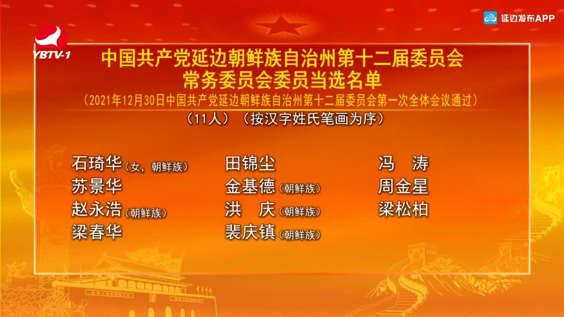 【视频新闻】中国共产党延边朝鲜族自治州第十二届委员会常务委员会委员当选名单