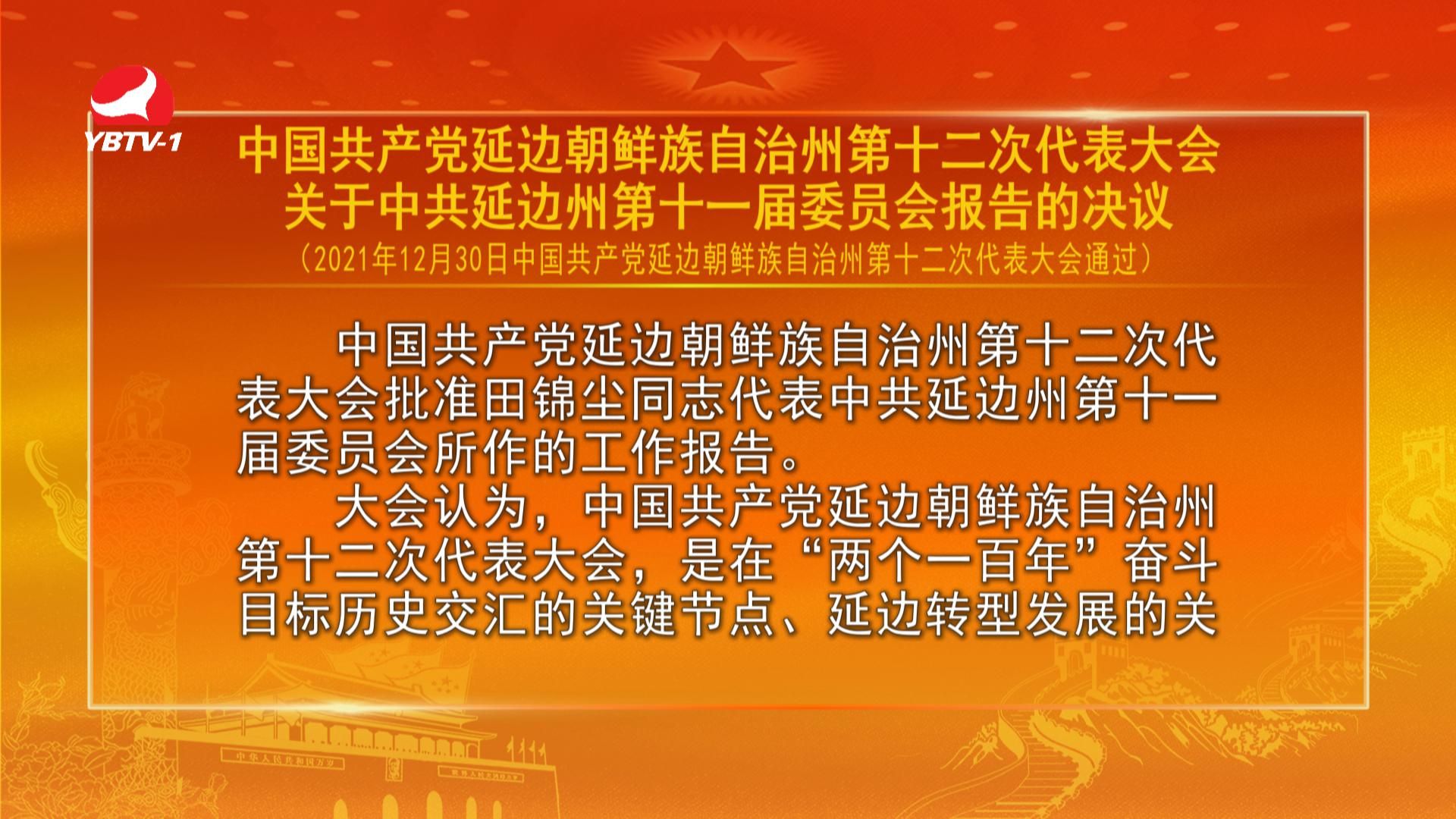 【视频新闻】中国共产党延边朝鲜族自治州第十二次代表大会关于中共延边州第十一届委员会报告的决议
