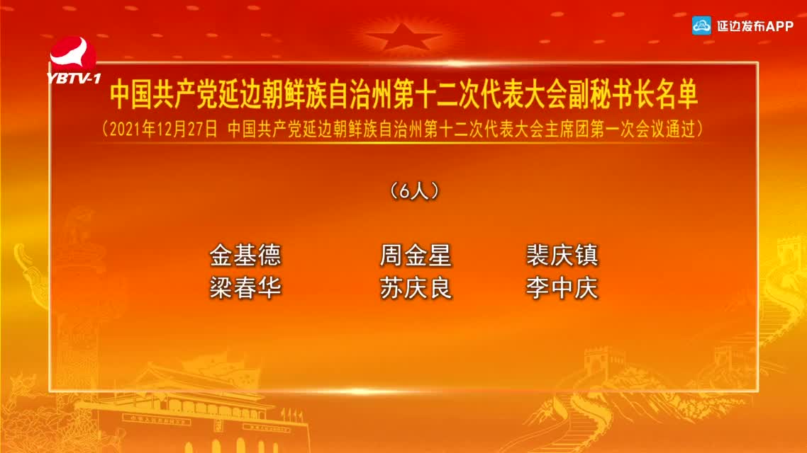 【视频新闻】中国共产党延边朝鲜族自治州第十二次代表大会秘书长名单