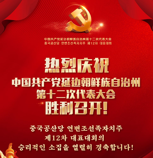 热烈庆祝中国共产党延边朝鲜族自治州第十二次代表大会胜利召开!