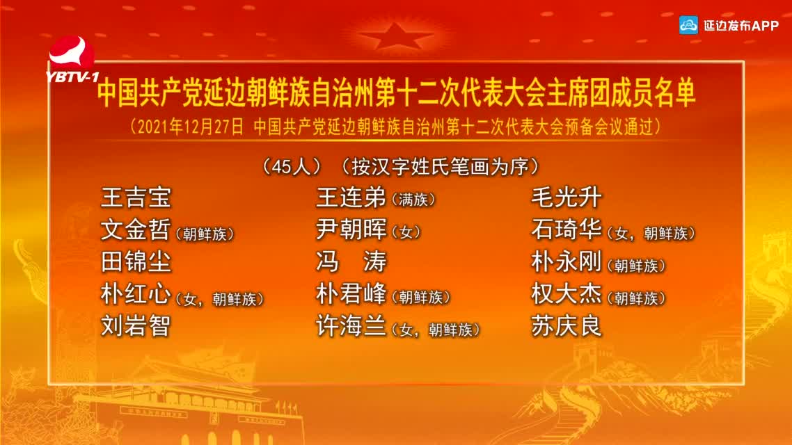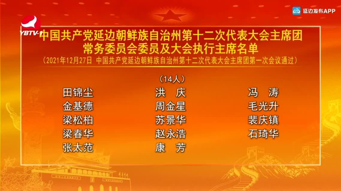 【视频新闻】中国共产党延边朝鲜族自治州第十二次代表大会主席团成员名单