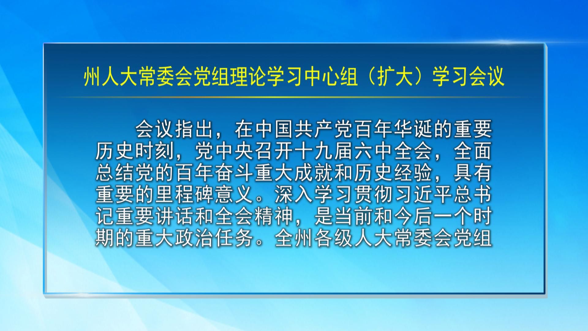 【视频新闻】州人大常委会党组召开理论学习中心组(扩大)学习会议传达学习党的十九届六中全会精神