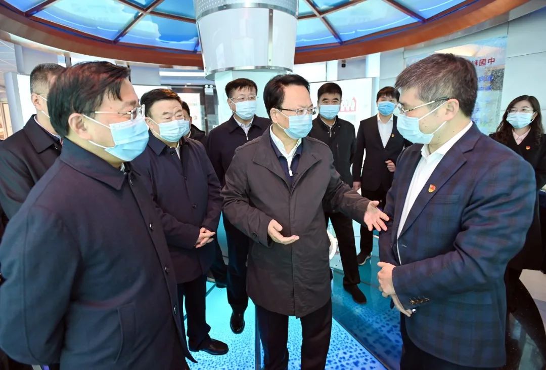 景俊海、韩俊走进科技展馆,详细了解长春应化所发展历程和最新科研成果,鼓励长春应化所大力弘扬光荣传统,持续加强科技研发和人才培养,积极与企业开展产学研用合作,推动科技研发与生产实践紧密结合