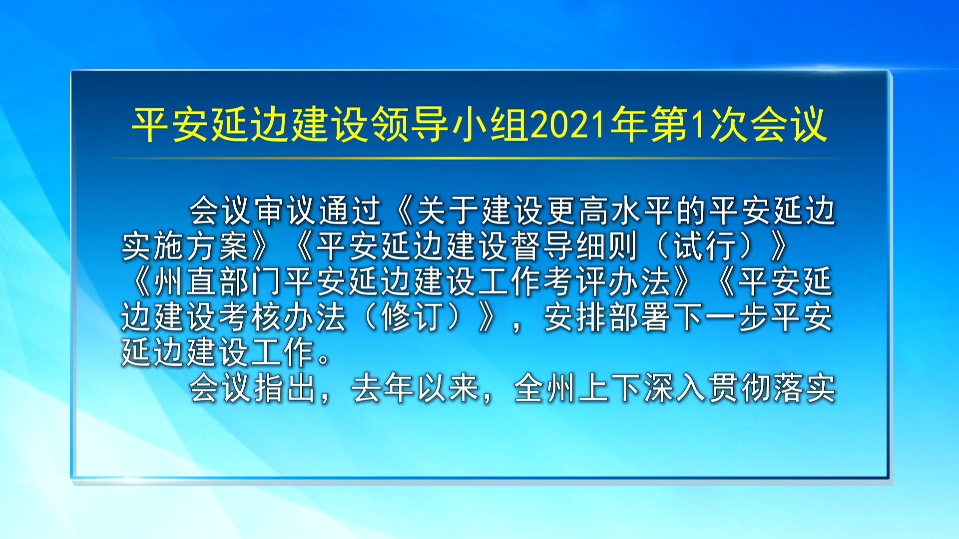 【视频新闻】平安延边建设领导小组2021年第1次会议召开