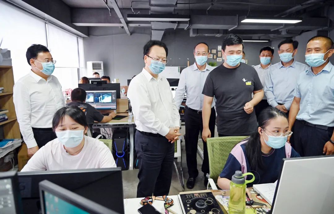 8月6日,省委书记景俊海到长春新区和高新区调研民营经济发展工作,在摆渡创新工场了解孵化企业发展情况