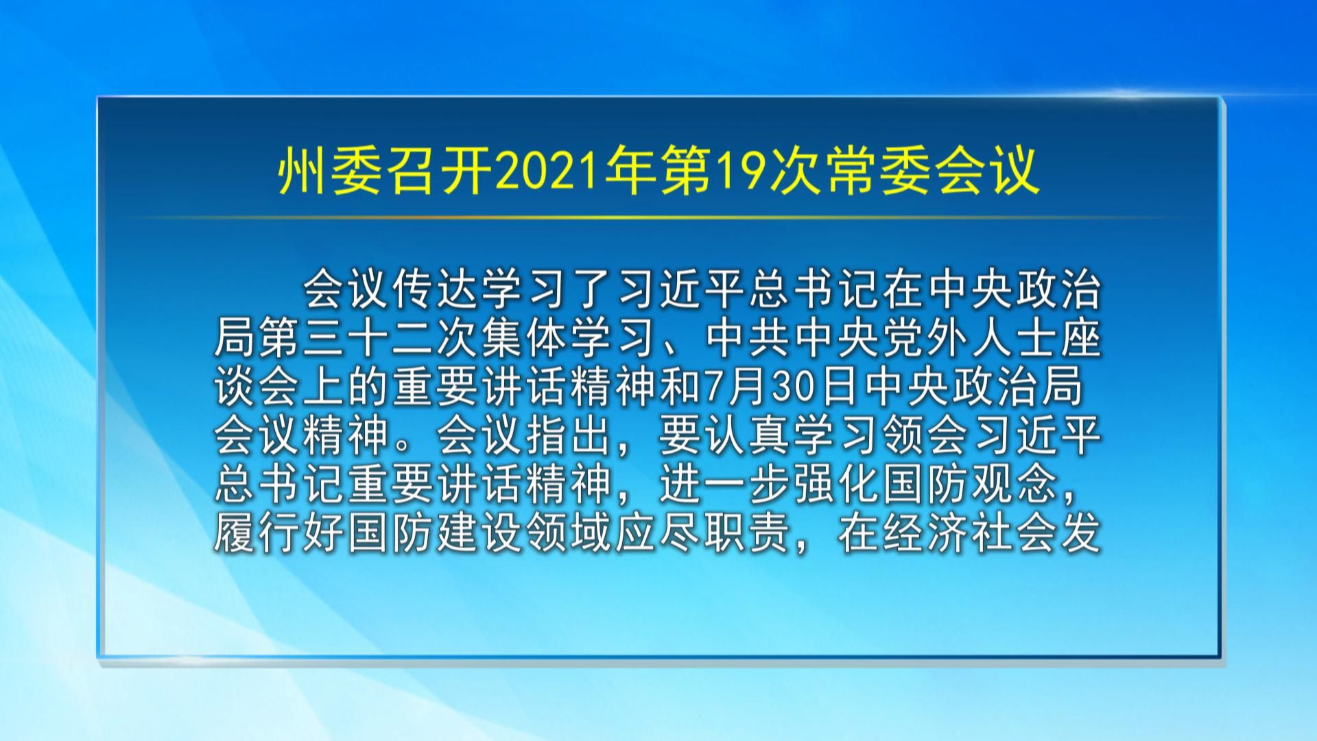【视频新闻】州委召开2021年第19次常委会议