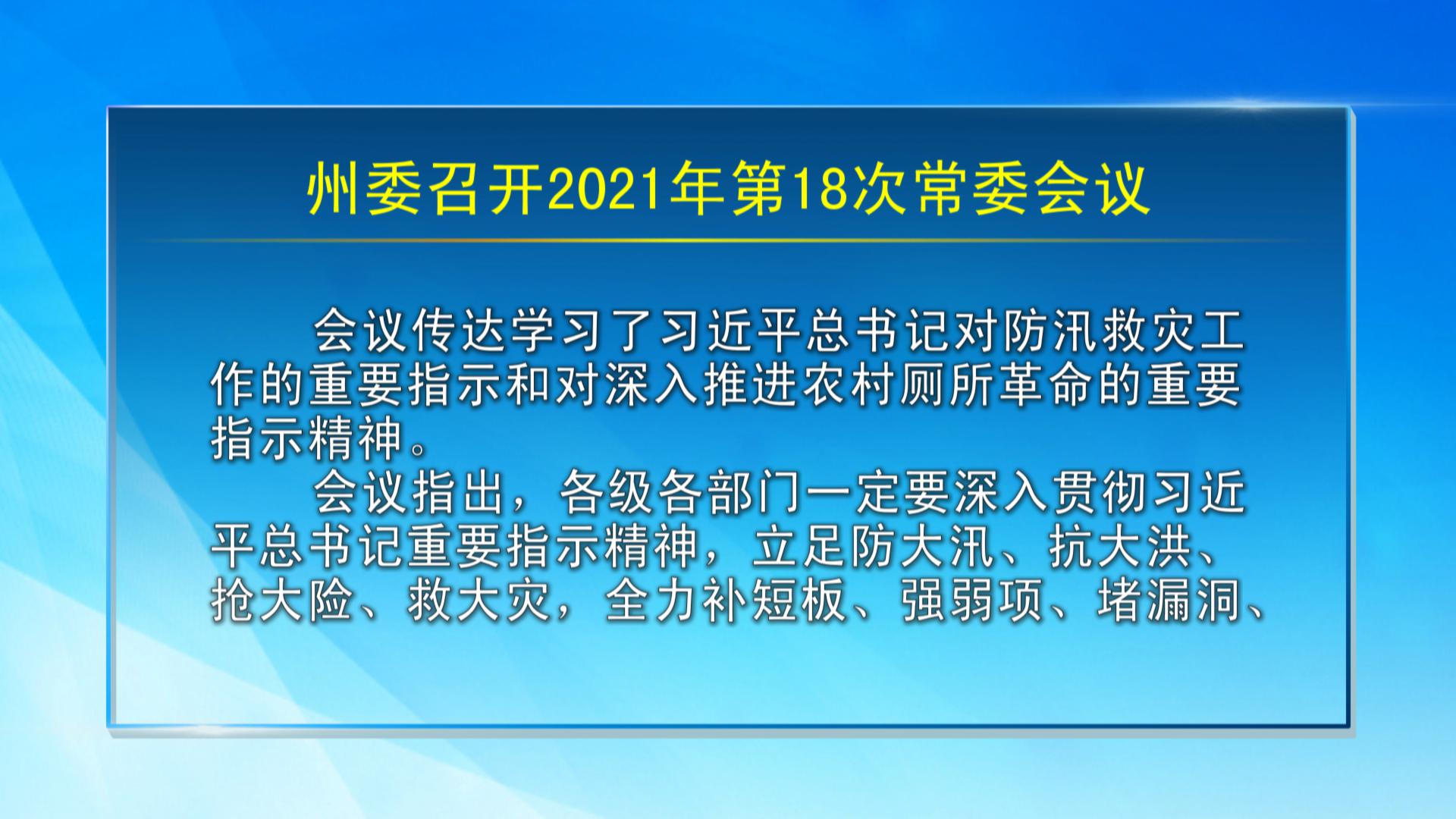 【视频新闻】州委召开2021年第18次常委会议