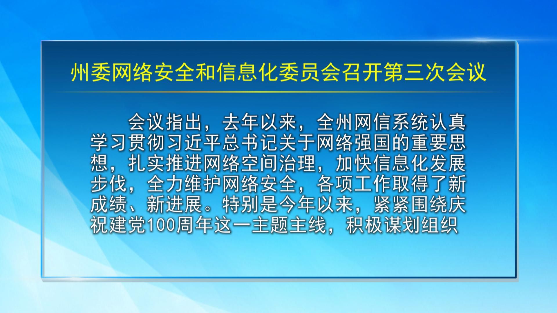【视频新闻】州委网络安全和信息化委员会召开第三次会议